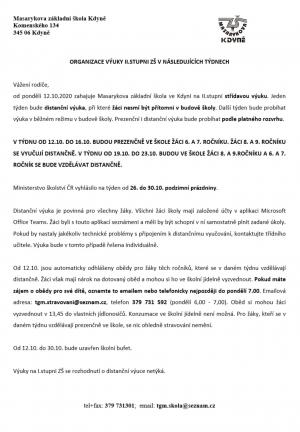 Organizace výuky žáků 2.stupně MZŠ Kdyně od 30.11. 2020 bude do odvolání probíhat následujícím způsobem:
