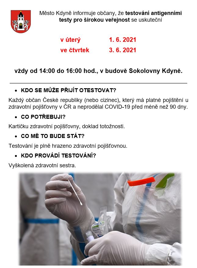 Testování se uskuteční v čase od 14:00 do 16:00 hod.