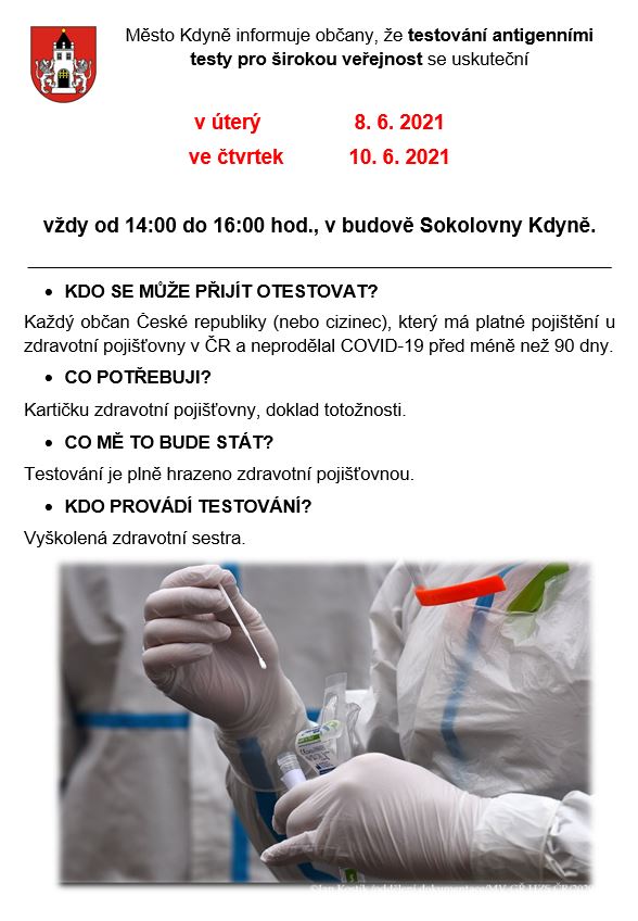 Testování se uskuteční v čase od 14:00 do 16:00 hod.