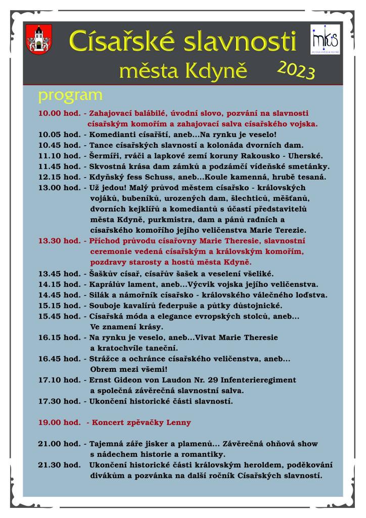 CÍSAŘSKÉ SLAVNOSTI MĚSTA KDYNĚ se blíží.