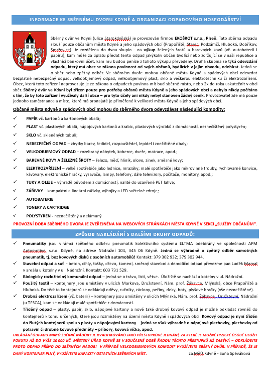 Informace ke sběrnému dvoru Kdyně a organizaci odpadového hospodářství