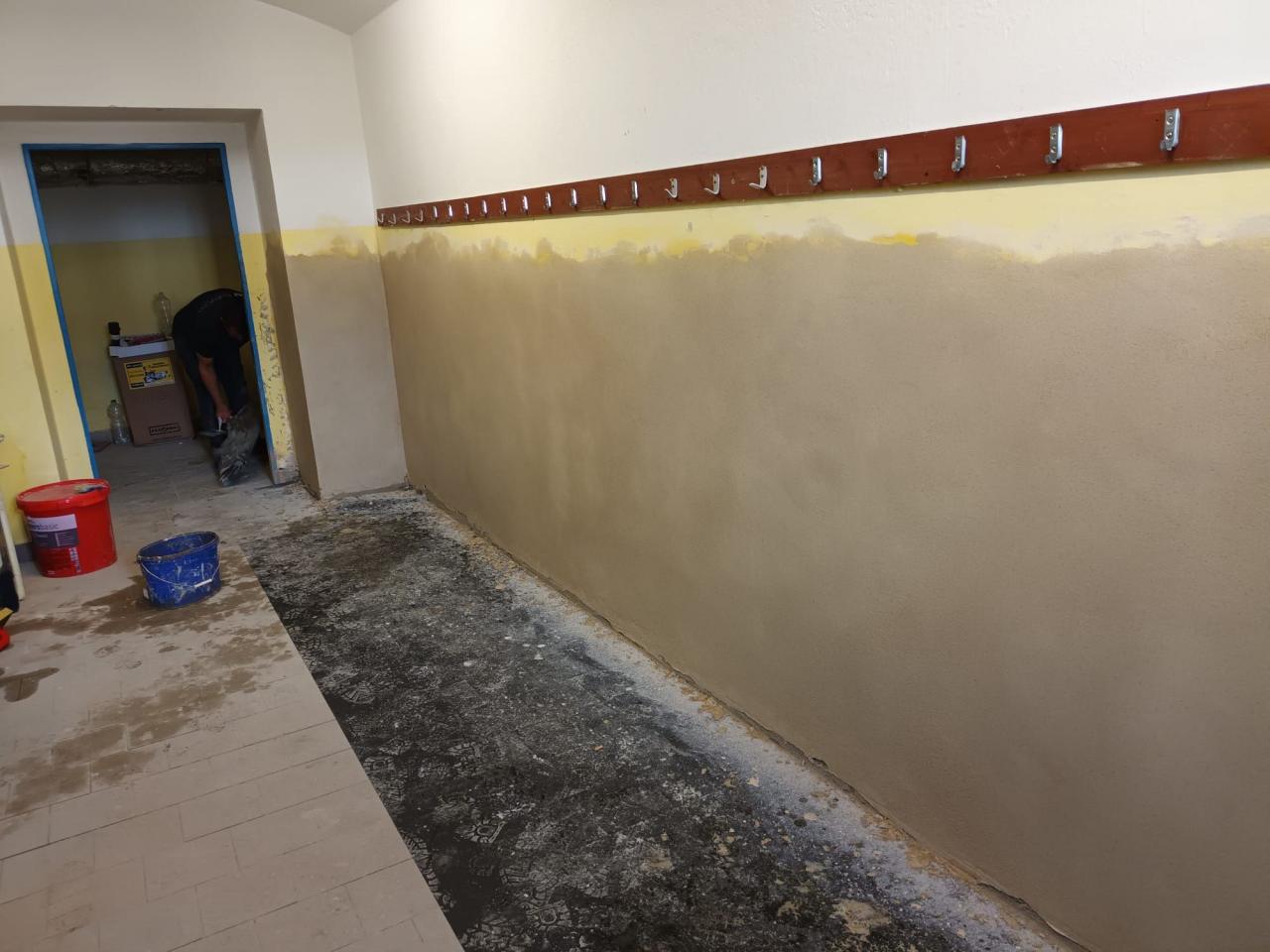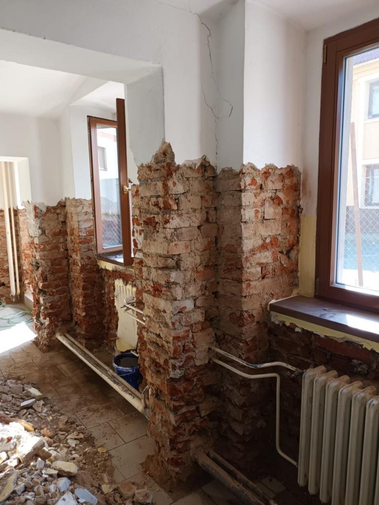 Z důvodu časové náročnosti všech realizovaných prací došlo v této souvislosti rovněž ke zkrácení školního roku 2021/2022. Sanační práce v budově probíhají dle časového harmonogramu a kdyňští žáci tak do školy nastoupí ve standardním termínu, tj. ve čtvrtek, 1. září 2022. Předmětem II. etapy sanace bylo pravé křídlo budovy – prostory šaten žáků a navazující skladovací prostory. Již prvotní obnažení zdiva zde odhalilo rozsáhlé poškození nosných sloupů budovy, které tak z hlediska statiky budovy po dlouhá léta představovaly skryté nebezpečí a muselo následně dojít k jejich zpevnění a dozdění. Příčinou vlhkosti v této části budovy školy bylo nepřipojení svodu dešťové vody pod chodníkem v ulici Komenského. Dešťová voda ze střechy školy tak řadu let stékala přímo do základů budovy, které v nosných částech značně poškodila a způsobila masivní vlhkost a vznik plísní v šatnách žáků. Po dokončení sanace se tak žáci kdyňské základní školy po dlouhých letech již nebudou muset zdržovat v plesnivých chodbách, třídách ani šatnách.