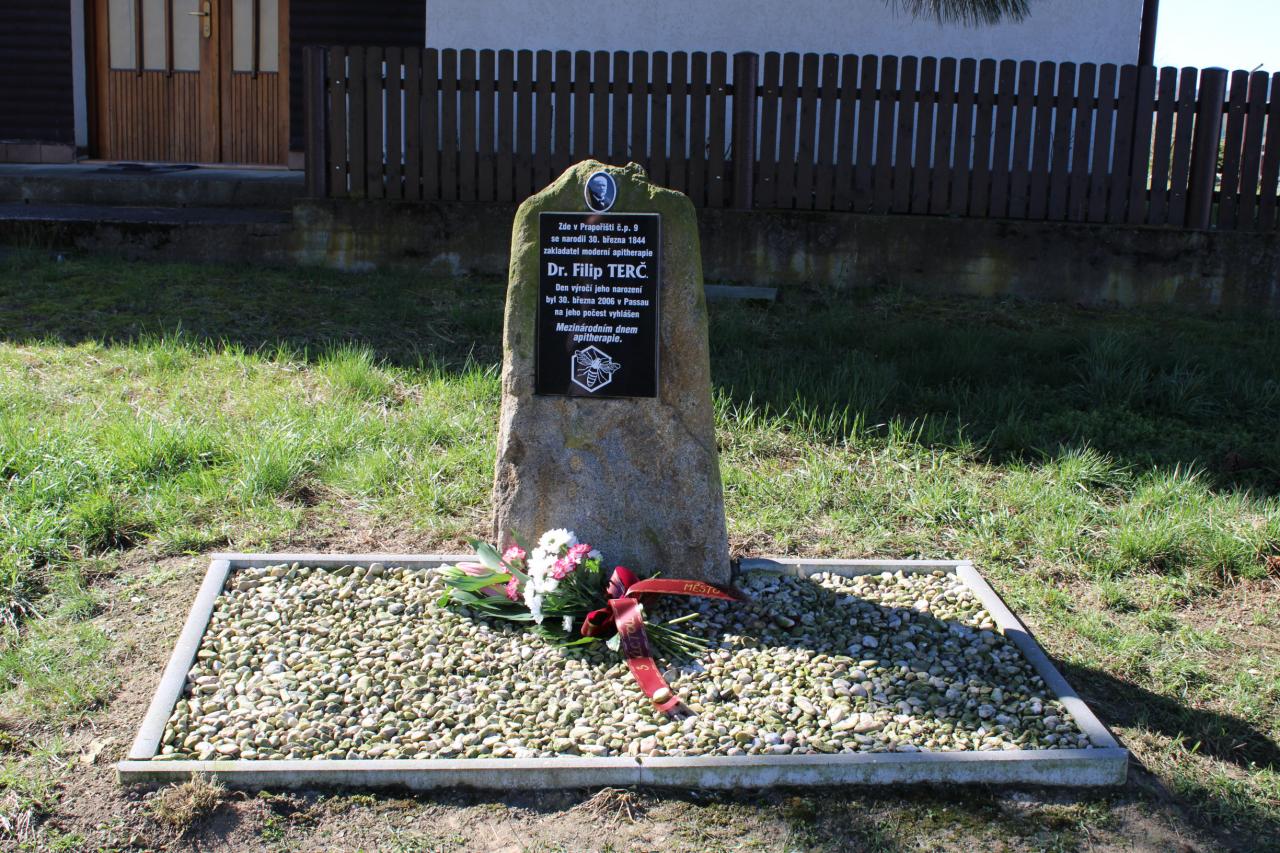 Filip Terč se narodil v domku č.p. 9, na jehož místě nyní stojí malý památník, připomínající právě osobu tohoto významného prapořišťského rodáka. Zástupci města Kdyně proto dnes k pomníku položili květiny a věnovali tomuto významnému rodákovi alespoň tichou vzpomínku. Dnešní den, tedy den narození Filipa Terče, je zároveň na jeho počest SVĚTOVÝM DNEM APITERAPIE. Při této příležitosti připomínáme článek o návštěvě zástupců města Kdyně ve slovinském Mariboru, kde byla přesně před rokem u příležitosti mezinárodního sympozia apiterapie odhalena busta tohoto významného prapořišťského rodáka. V článku najdete také informace o životě Filipa Terče i samotné apiterapii jako takové.