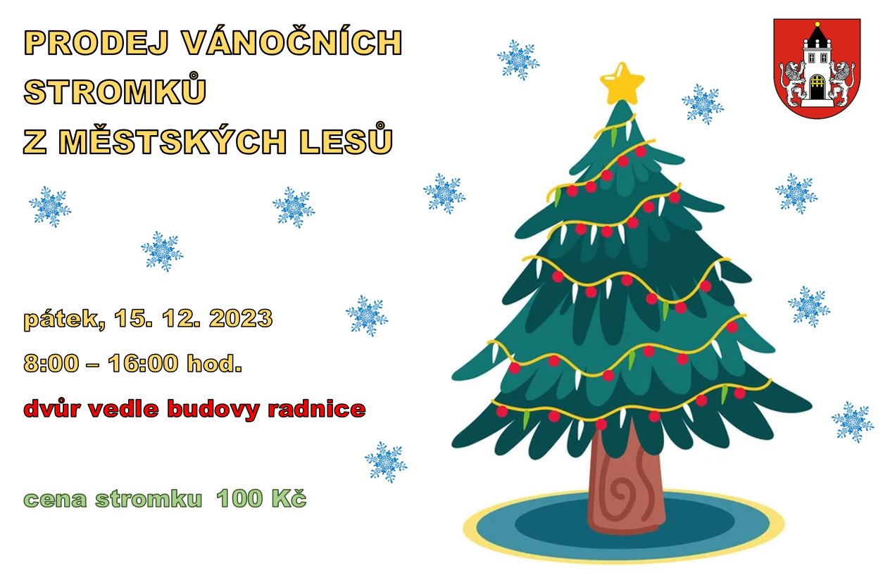 Prodej stromků se uskuteční v pátek, 15. 12. 2023 v čase od 8:00 do 16:00 hod. ve dvoře radnice. Cena stromku (smrček): 100 Kč.