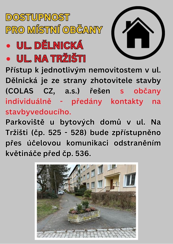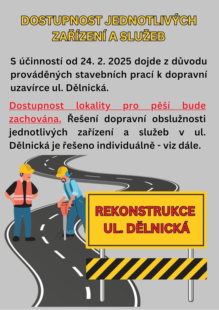 Rekonstrukce ul. Dělnická - dostupnost jednotlivých zařízení a služeb