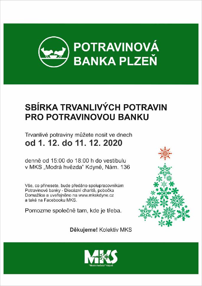 Sbírka trvanlivých potravin proběhne 1.12.- 11.12.2020 denně v době od 15 do 18 hod. ve vestibulu MKS "Modrá hvězda" Kdyně.