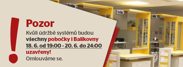 V rámci zkvalitnění a zmodernizování služeb České pošty dojde z důvodu implementace nového systému k dočasnému omezení poskytování služeb.