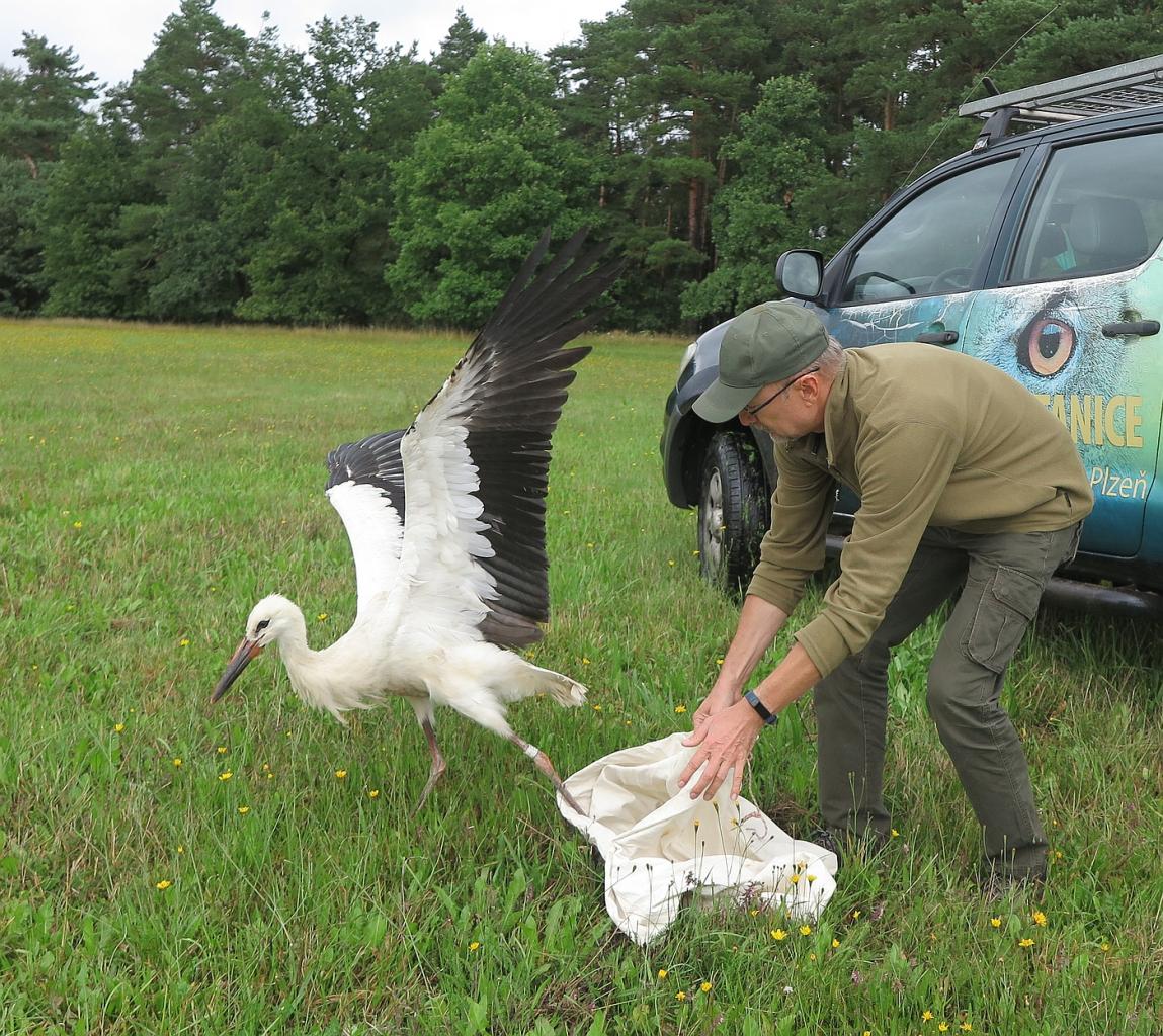 V kdyňském hnízdě se letos narodil pouze tento mladý čáp, druhý k němu byl pracovníky záchranné stanice adoptován. Adopce proběhla bez problémů, celý proces přijetí tohoto mláděte byl průběžně monitorován. Včera se do Kdyně pracovníci záchranné stanice museli vydat znovu, tentokrát pro poraněnou poštolku, kterou nalezly kolegyně z pečovatelské služby Doma ve Kdyni, které tak prokázaly, že jsou pečovatelkami v každém směru - i v tom zvířecím. Děkujeme našim kolegyním i pracovníkům záchranné stanice za perfektní spolupráci!